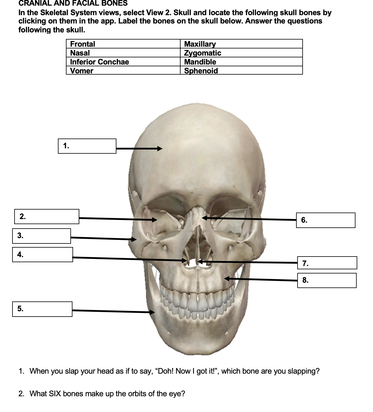 Solved Cranial And Facial Bones In The Skeletal System Vi Chegg Com - The cavity secretes mucous into the nasal cavity, lightens the skull, and resonates the voice.